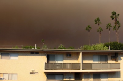 高速に乗ってしばらくすると、パトカーや消防車がひっきりなしにランプをつけて走っていました。車のガラスには白い灰が飛んできます。火事、でしょうか。