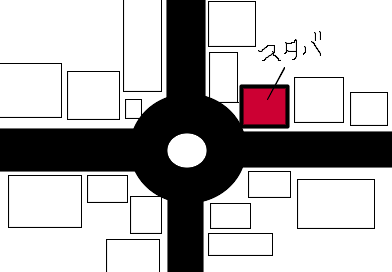 図のように、スタバがある場所はオレンジサークルといってアンティーク店が立ち並ぶ雰囲気の良い所なんですが、何故か四方の道が車立ち入り禁止でして。